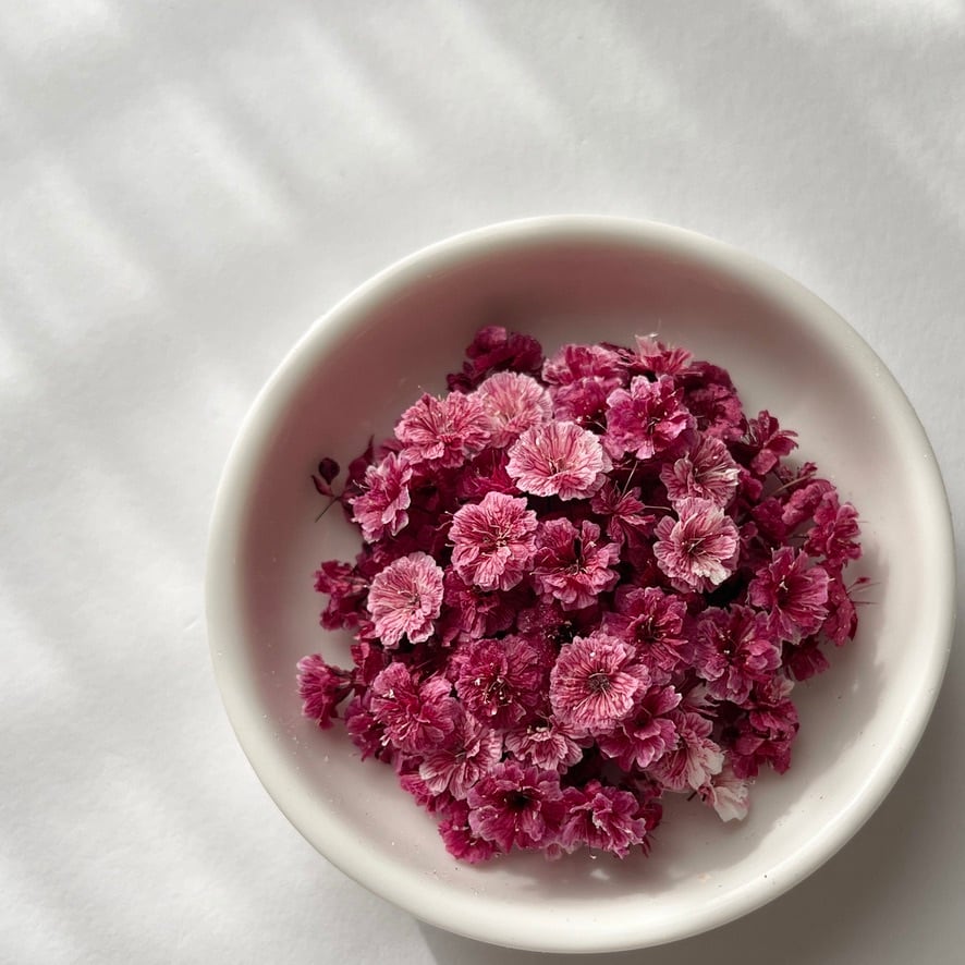 また、茎を取り除いた「花のみ」の状態でお届けするため、レジンやネイル制作にもすぐにご使用いただけます。
