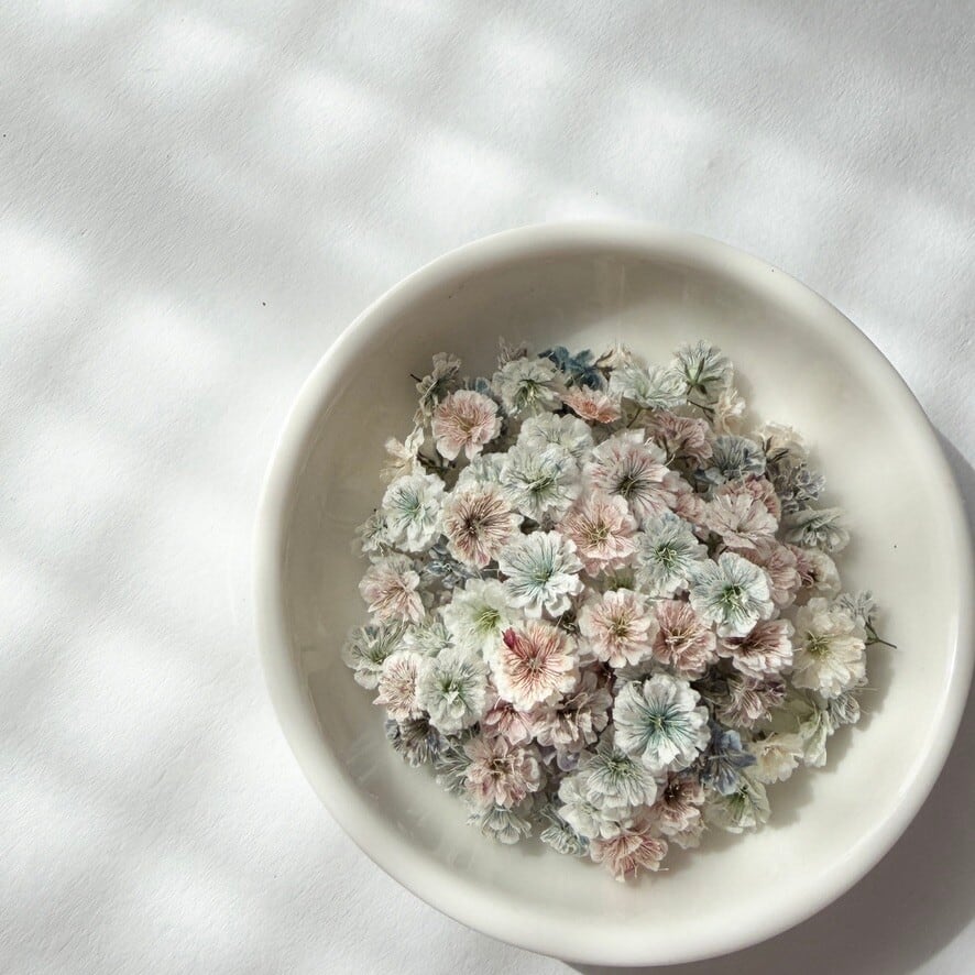 また、茎を取り除いた「花のみ」の状態でお届けするため、レジンやネイル制作にもすぐにご使用いただけます。
